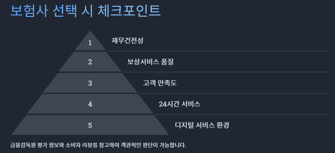 신뢰할 수 있는 보험사 선택은 성공적인 자동차 보험 가입의 핵심입니다. 보험사의 재무건전성, 보상서비스 품질, 고객 만족도 등을 종합적으로 평가해야 합니다. 금융감독원에서 제공하는 보험사 평가 정보와 소비자 리뷰를 참고하면 객관적인 판단이 가능합니다. 특히 사고 발생 시 신속한 보상처리가 가능한지 여부는 매우 중요한 선택 기준입니다.