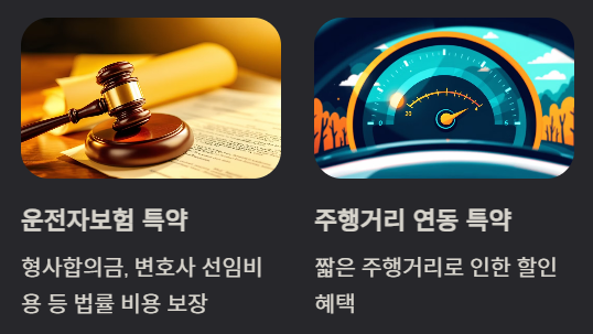 각 보험사는 초보 운전자를 위한 다양한 특약 상품을 제공하고 있습니다. 대표적으로 운전자보험 특약, 주행거리 연동 특약, 블랙박스 특약 등이 있으며, 이러한 특약들은 보험료 절감과 추가 보장을 동시에 제공할 수 있습니다. 특히 운전자보험 특약은 형사합의금, 변호사 선임비용 등 운전 중 발생할 수 있는 법률 비용을 보장해주어 매우 유용합니다. 보험사마다 특약의 보장 범위와 한도가 다르므로 꼼꼼한 비교가 필요합니다.