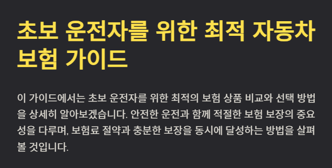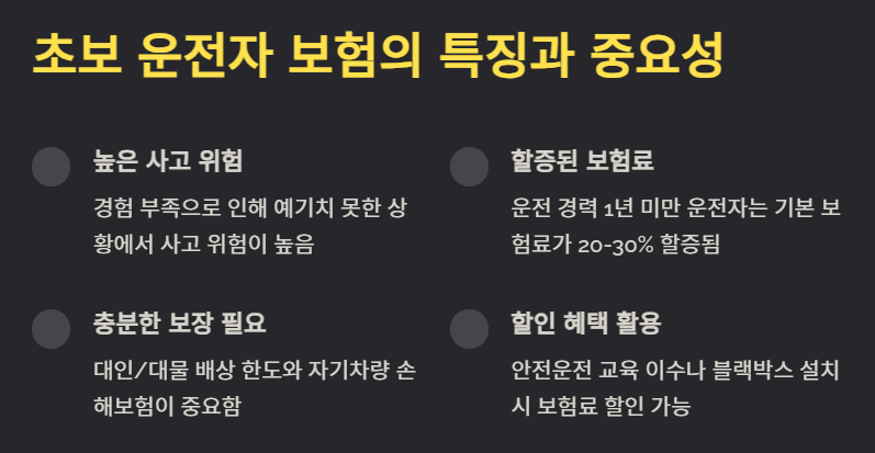 초보 운전자에게 가장 중요한 것은 안전한 운전과 함께 적절한 보험 보장입니다. 운전 경력이 짧은 초보자들은 사고 위험이 상대적으로 높아 보험 선택이 더욱 신중해야 합니다. 이 가이드에서는 초보 운전자를 위한 최적의 보험 상품 비교와 선택 방법을 상세히 알아보겠습니다. 보험료 절약과 충분한 보장을 동시에 달성하는 현명한 선택 방법을 함께 살펴보겠습니다.