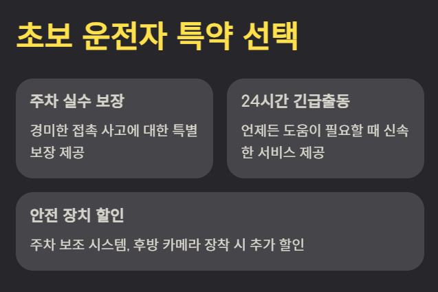 초보 운전자를 위한 특약은 기본 할인에 추가적인 보장을 제공합니다. 주차 실수나 경미한 접촉 사고에 대한 특별 보장, 24시간 긴급출동 서비스 등이 대표적입니다. 이러한 특약들은 초기 보험료는 다소 높을 수 있지만, 사고 발생 시 자기부담금을 크게 줄여주어 장기적으로는 비용 절감 효과가 있습니다. 특히 주차 보조 시스템이나 후방 카메라 등 안전 장치 장착 시 특약 할인을 추가로 받을 수 있어, 차량 구매 시 이러한 옵션의 선택도 고려할 만합니다.