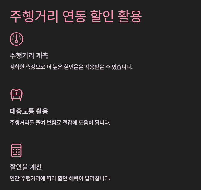주행거리 연동 할인은 보험료 절약의 효과적인 방법입니다. 연간 주행거리가 적을수록 사고 위험이 낮아진다는 통계를 바탕으로, 보험사들은 주행거리에 따른 할인 혜택을 제공합니다. 출퇴근 거리가 짧거나 주말에만 운전하는 초보 운전자라면 반드시 고려해볼 만한 옵션입니다.