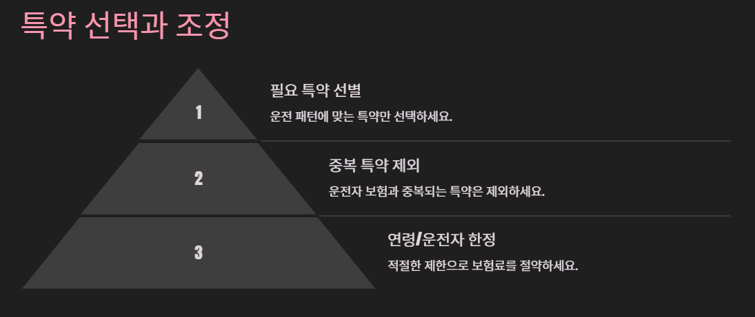 연령한정, 운전자한정 특약을 적절히 활용하면 보험료를 절약할 수 있습니다. 다만, 가족이나 지인의 차량 운전 가능성도 고려하여 너무 제한적인 특약은 피하는 것이 좋습니다.