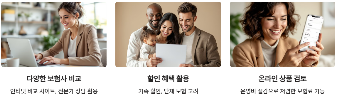 보험료를 절약하기 위해 가장 중요한 것은 다양한 보험사의 상품을 비교하는 것입니다. 각 보험사마다 책정 기준과 할인 혜택이 다르기 때문에, 동일한 보장 내용이라도 보험료에 차이가 날 수 있습니다. 인터넷 보험 비교 사이트나 전문가 상담을 활용해 비교해 보세요.