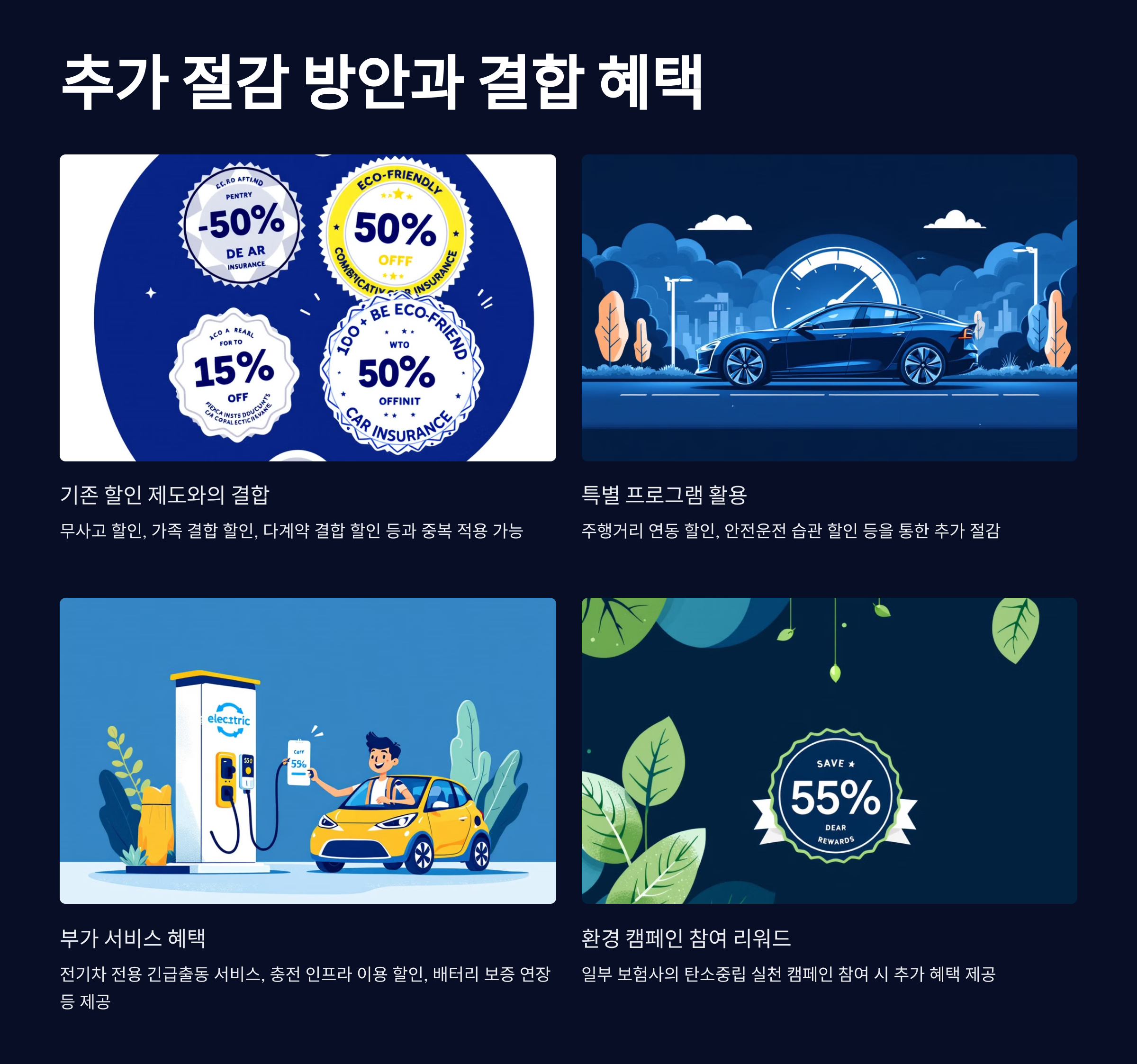 Q: 친환경 차량 보험 할인은 기존 자동차 보험의 다른 할인들과 중복 적용이 가능한가요?