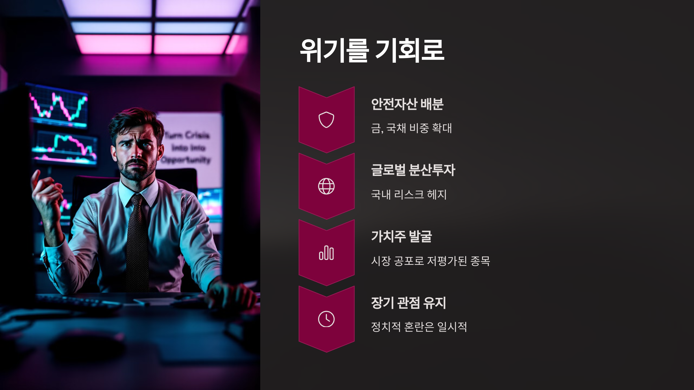 - 정치적 상황에 감정적으로 반응하지 말고, 데이터에 기반한 냉정한 판단을 유지하세요.