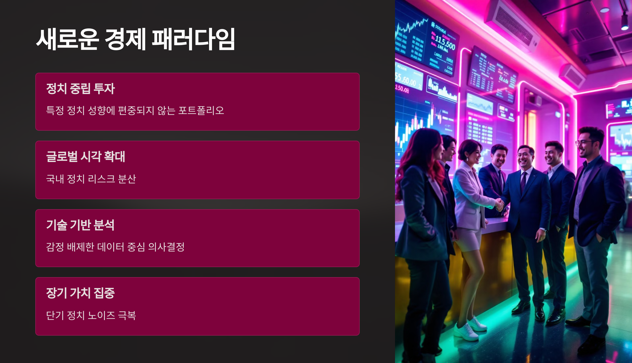 정치적 불확실성이 높은 시기일수록 감정적 의사결정을 최소화하는 것이 중요합니다. 최근 중장년층도 접근 가능한 로보어드바이저와 자산관리 앱은 정치적 편향에서 벗어난 객관적 투자 의사결정을 돕습니다. 특히 50대 이상 투자자들에게 맞춤형 자산배분 서비스를 제공하는 핀테크 플랫폼이 주목받고 있습니다.