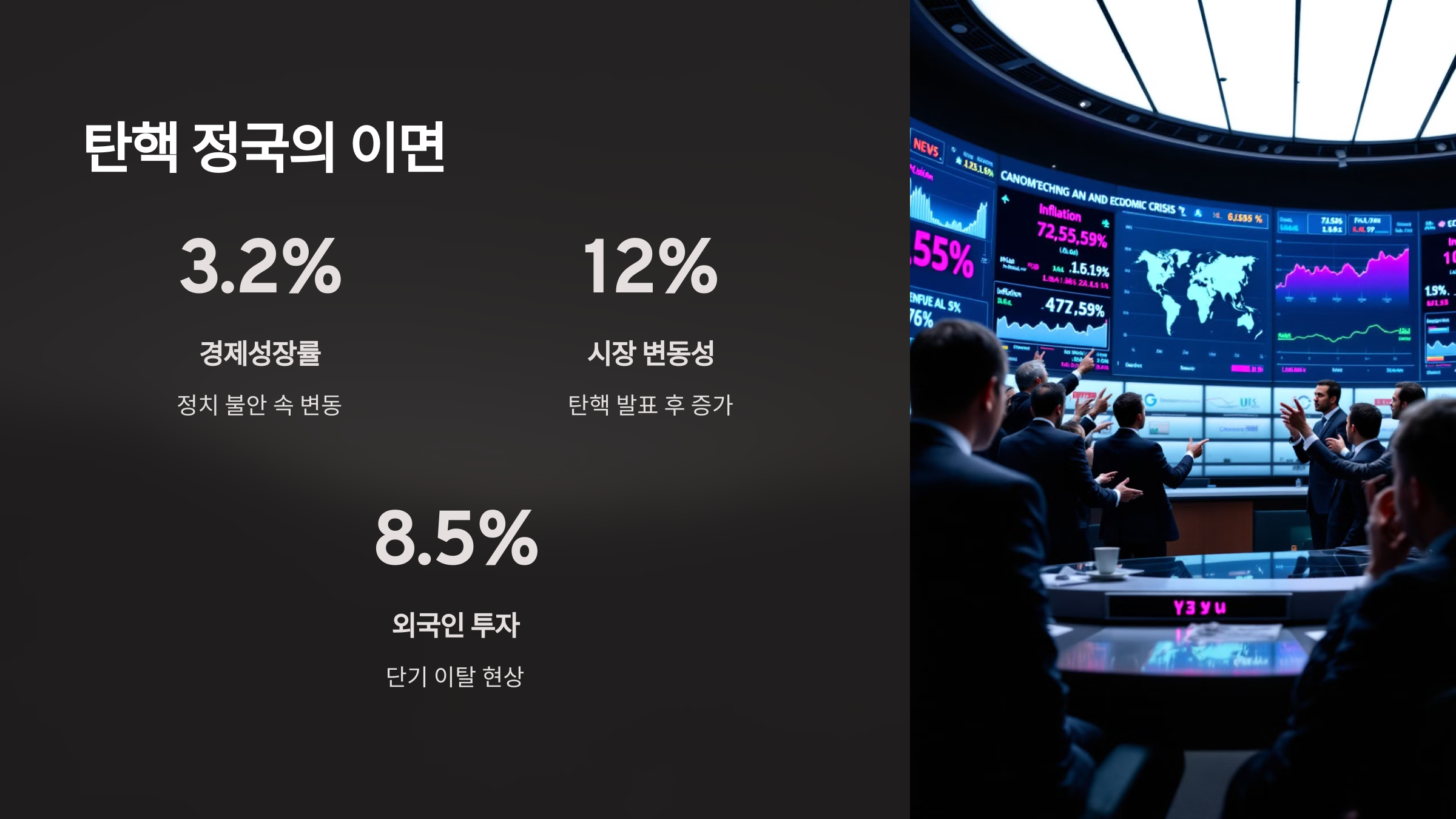 한국 경제는 정치 지형에 얼마나 민감하게 반응할까요? 윤석열 대통령에 대한 탄핵 정국의 경제적 파장은 표면적인 시장 변동성을 넘어 자산관리의 근본적인 패러다임을 뒤흔들고 있습니다. 정치와 경제는 분리될 수 없는 밀접한 관계이지만, 그 상관관계는 우리가 흔히 생각하는 것보다 훨씬 복잡하고 다층적입니다. 정치 불안정성과 경제적 파급효과의 역사적 패턴에서 시작해보세요.