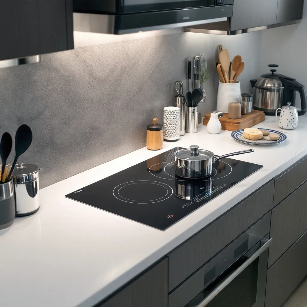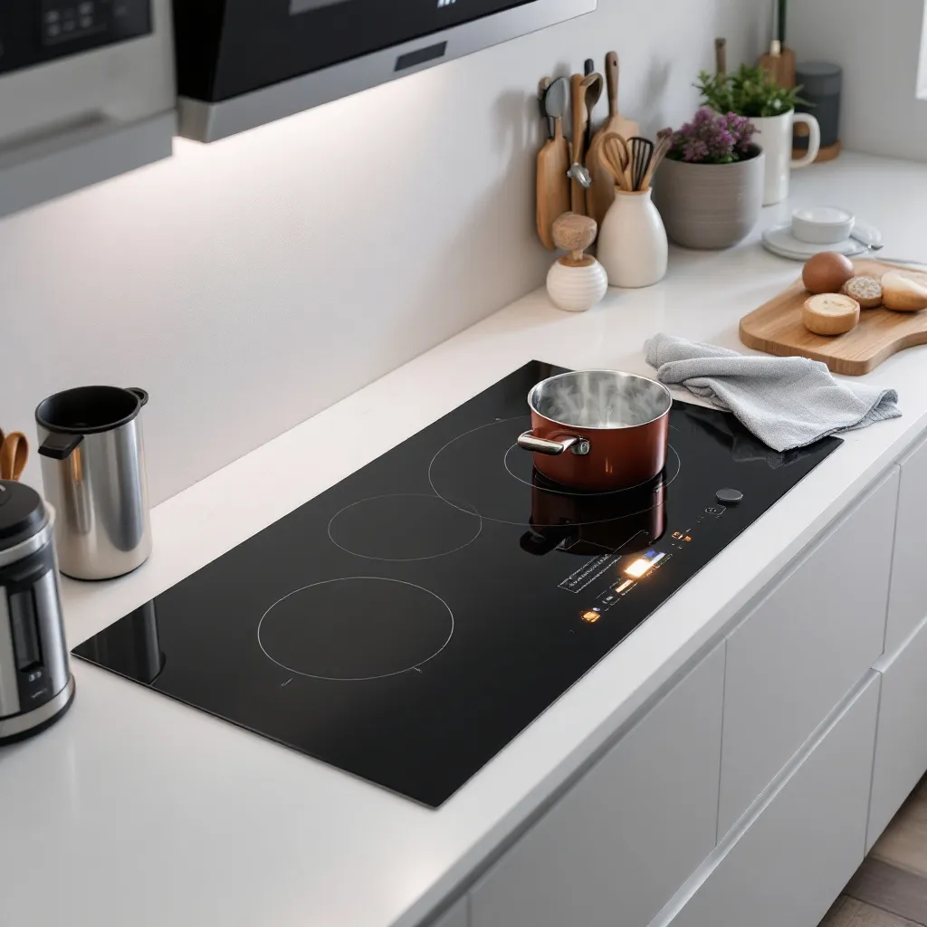 터치식 인덕션은 유리 표면 위에 버튼이 인쇄되어 있거나 LED로 표시되는 방식으로, 돌출된 부분 없이 평평한 디자인이 특징입니다. 이러한 미니멀한 외관은 현대적이고 고급스러운 주방 인테리어와 잘 어울리며, 특히 심플하고 깔끔한 분위기를 선호하는 소비자에게 인기가 높습니다. 평평한 표면은 청소가 용이하고, 일부 모델은 사용하지 않을 때 제어 패널이 완전히 꺼져 블랙 글라스만 보이는 '인비저블 디자인'을 채택하고 있습니다. 또한 인덕션 상판과 제어 패널이 일체형으로 설계되어 공간 활용성이 높으며, 빌트인 설치 시 주변 가구와의 조화가 뛰어납니다.