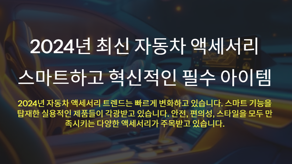 자동차 액세서리는 차량의 기능을 향상시키거나, 운전의 편의성을 높이고, 스타일을 돋보이게 하는 중요한 역할을 합니다. 2024년에는 기술의 발전과 함께 차량 액세서리 트렌드도 빠르게 변화하고 있습니다. 이제 단순히 외관을 꾸미는 액세서리가 아니라, 스마트 기능을 탑재한 실용적인 제품들이 각광받고 있습니다. 안전, 편의성, 그리고 스타일을 모두 만족시키는 다양한 액세서리가 주목받고 있으며, 전기차와 같은 최신 차량에도 적합한 아이템들이 증가하고 있습니다. 이제 본격적으로 2024년 최신 자동차 액세서리 트렌드를 살펴보겠습니다.
