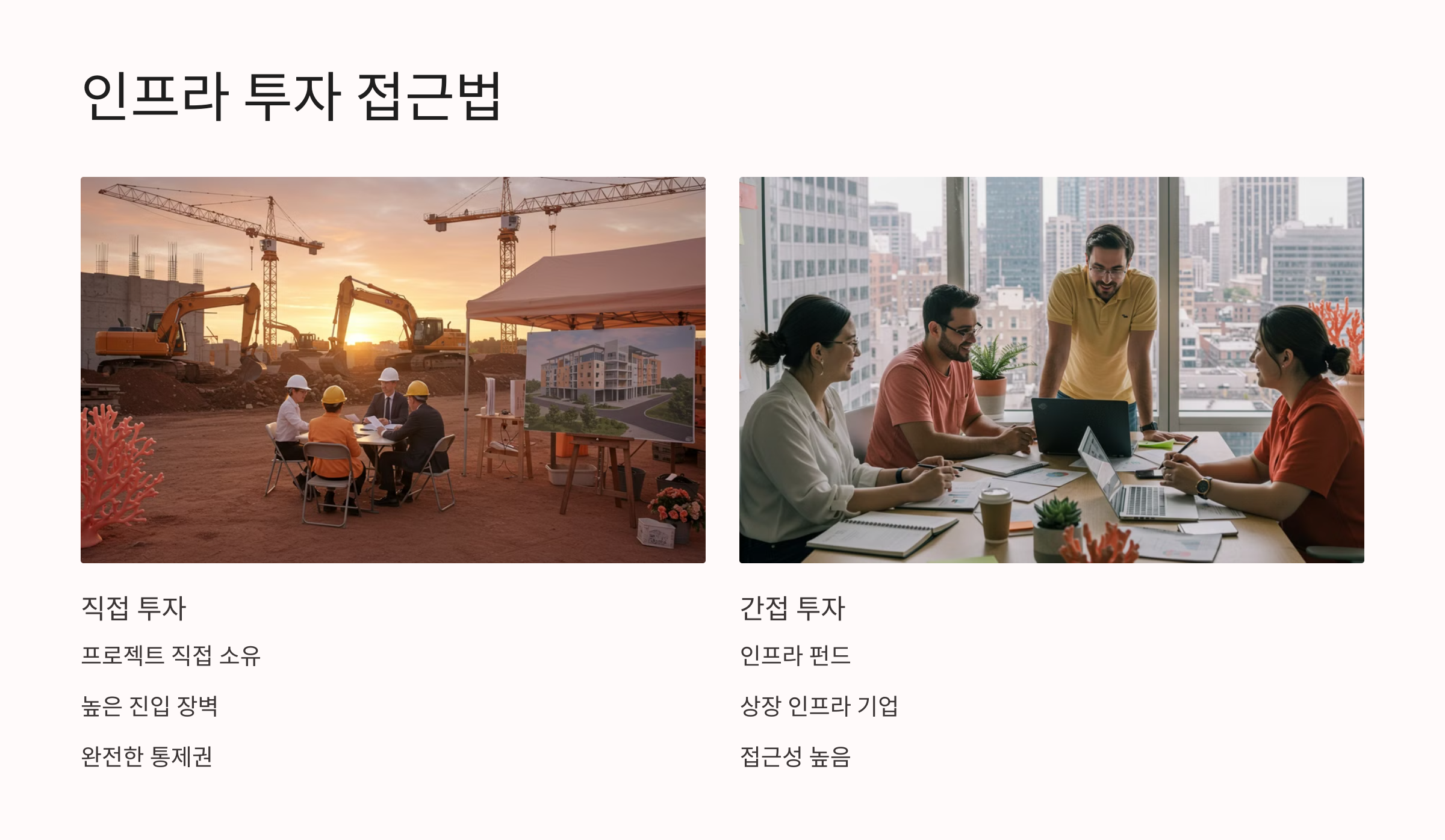 인프라 투자 접근법: 직접 vs 간접 투자 전략