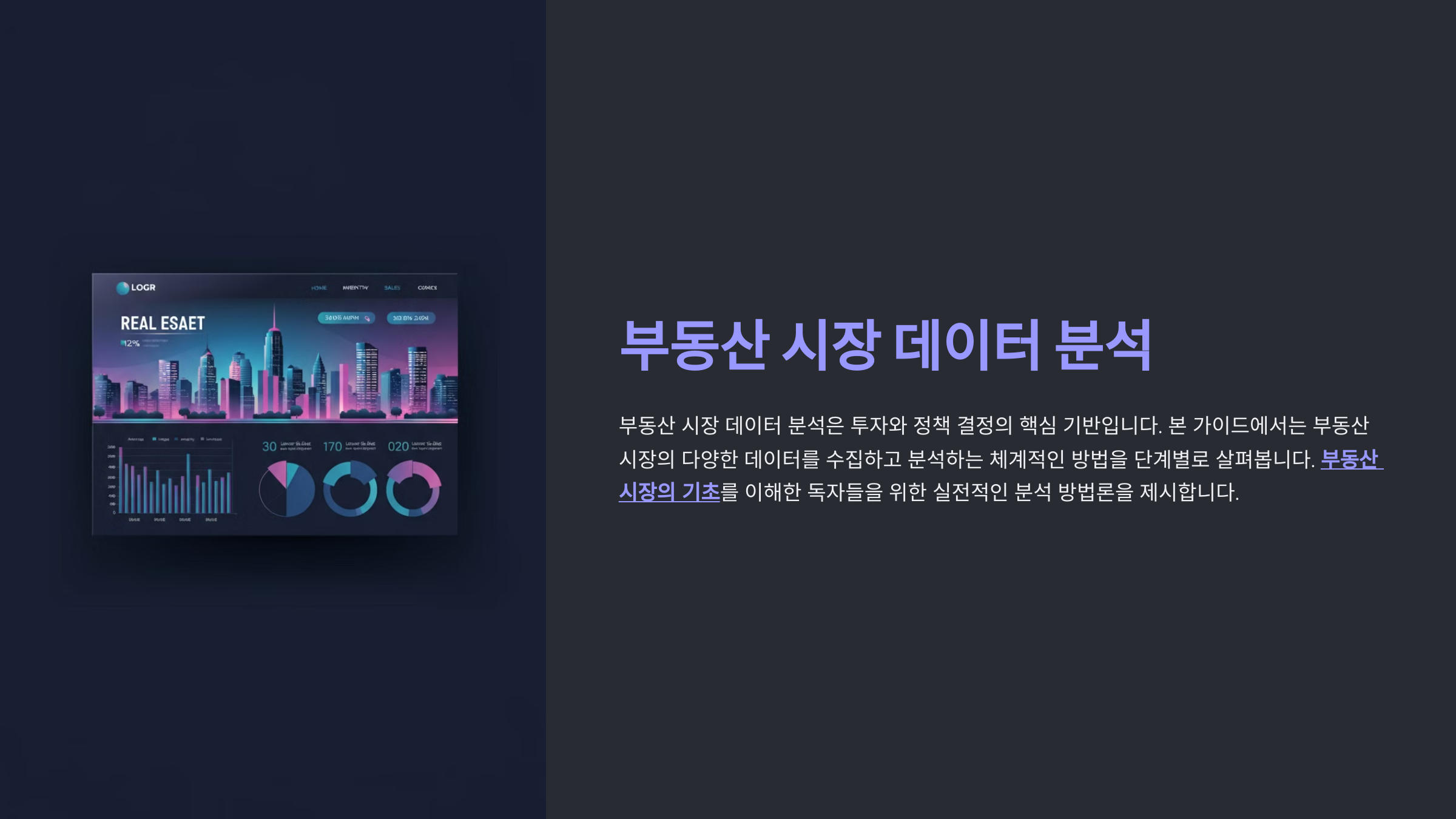 부동산 시장 데이터 분석은 투자와 정책 결정의 핵심 기반입니다. 본 가이드에서는 부동산 시장의 다양한 데이터를 수집하고 분석하는 체계적인 방법을 단계별로 살펴봅니다. 부동산 시장의 기초를 이해한 독자들을 위한 실전적인 분석 방법론을 제시합니다.